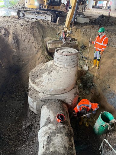 Die WLE-BAU GmbH realisierte hochwertige Projekte in den Bereichen Tiefbau, Straßenbau, Kanalbau, und Erdbau